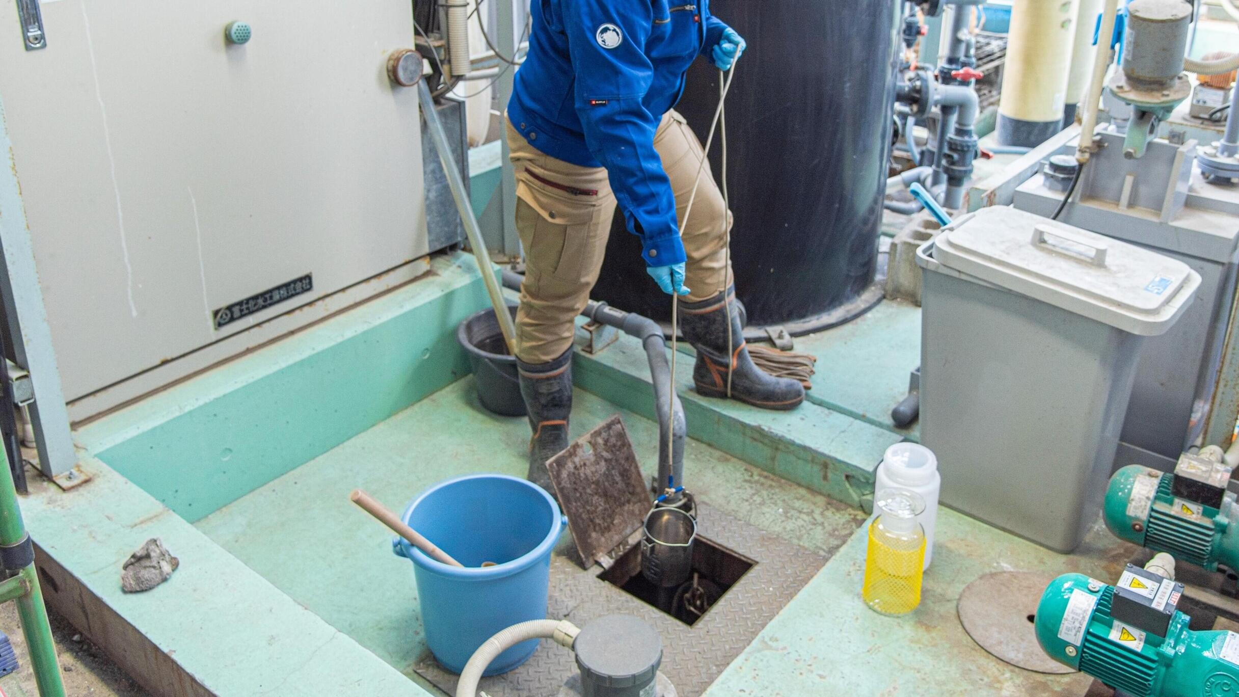社有車で神奈川県内のルートを巡回し、工場・事業場の排水、プール水、飲料水などの採水や試料引き取りを行います。 1日5~8社ほどを訪問し、採水方法は槽やコックからの採取などさまざま。マンホールや鉄板の蓋を開けるなど、力仕事を伴う場合もあります。 - 準備、片付け